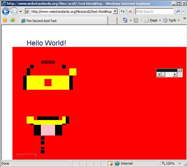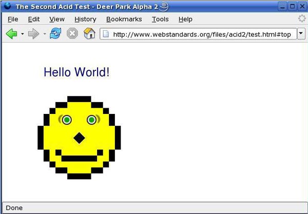 我的Firefox里还留有一个书签,嗯,就是这个:The Second Acid Test,它的PR有8,一个表面无比简单、内涵无比丰富的网页。 它是用来测试浏览器标准兼容性的。我没有条件用多个浏览器测试,或者是说人太懒,就直接把人家测试的结果贴出来啰。