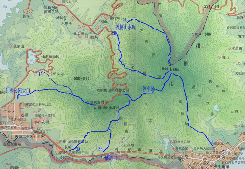 - 按原路从山上返回梧桐山村;
